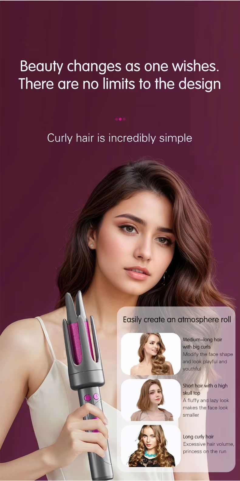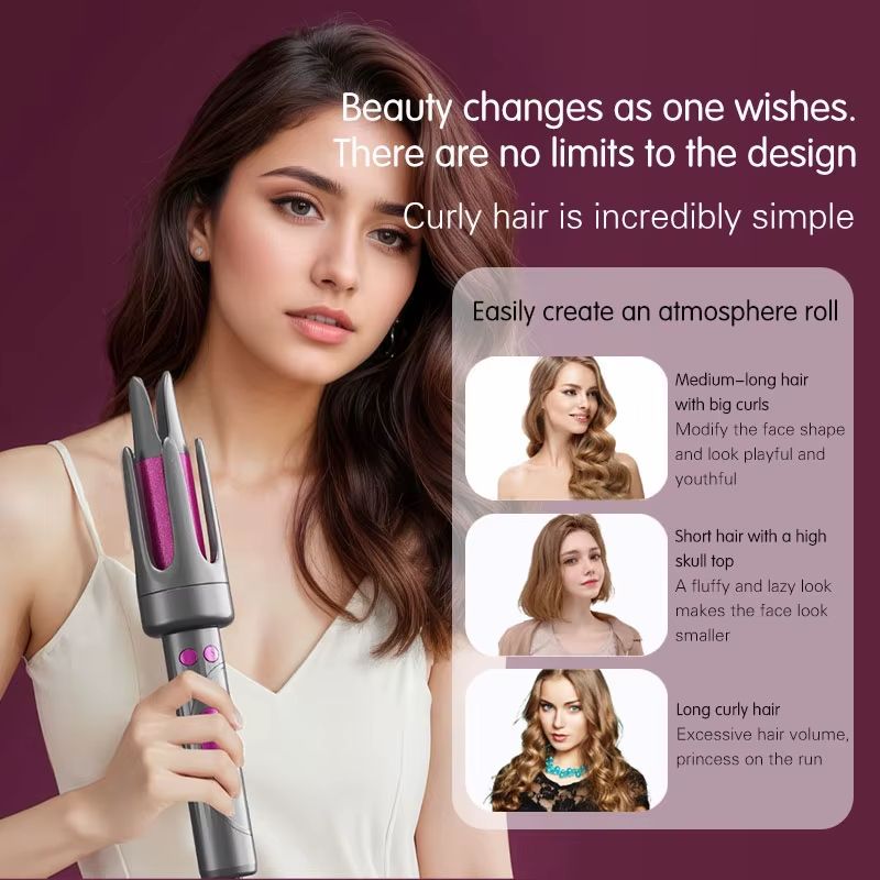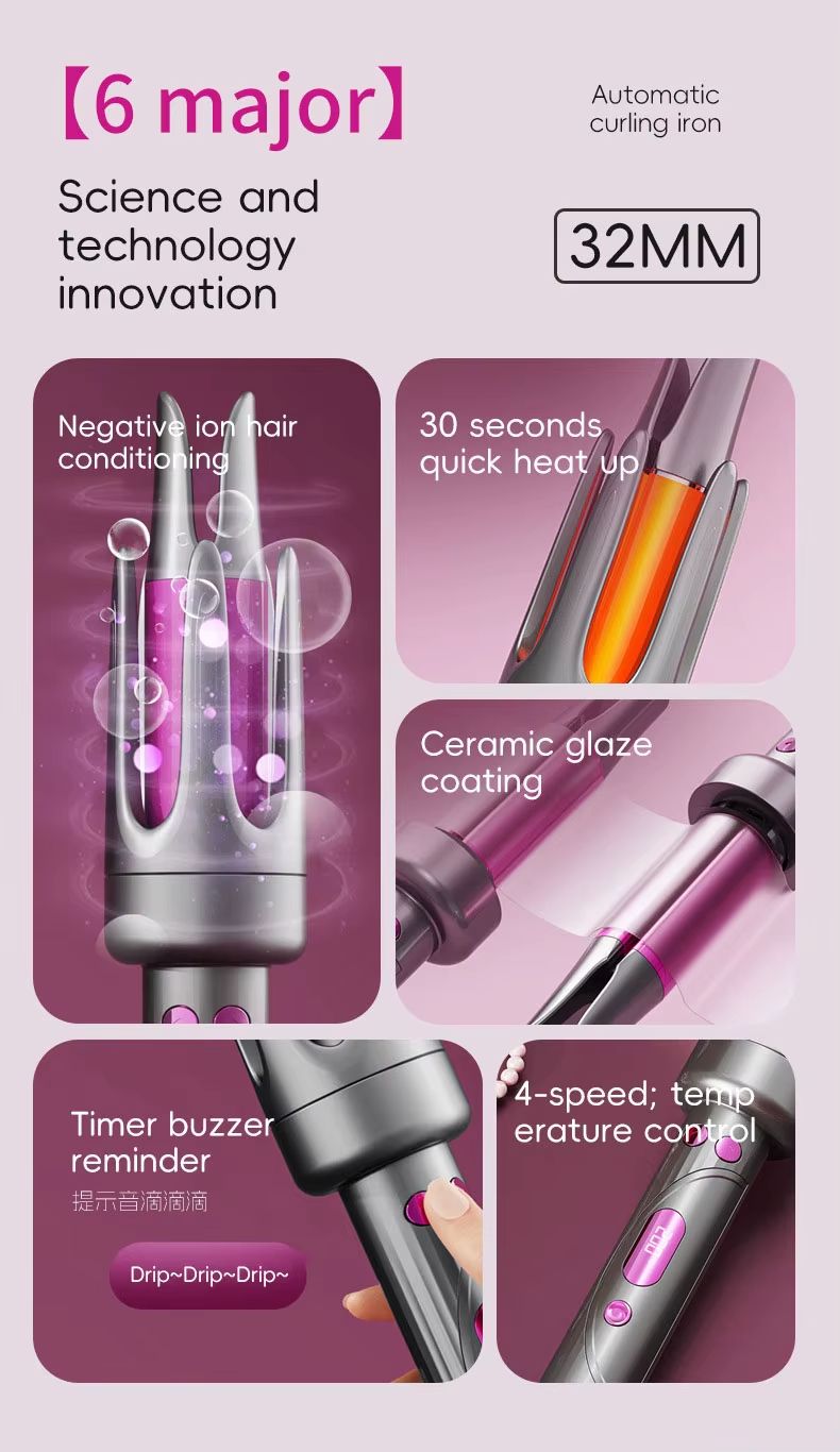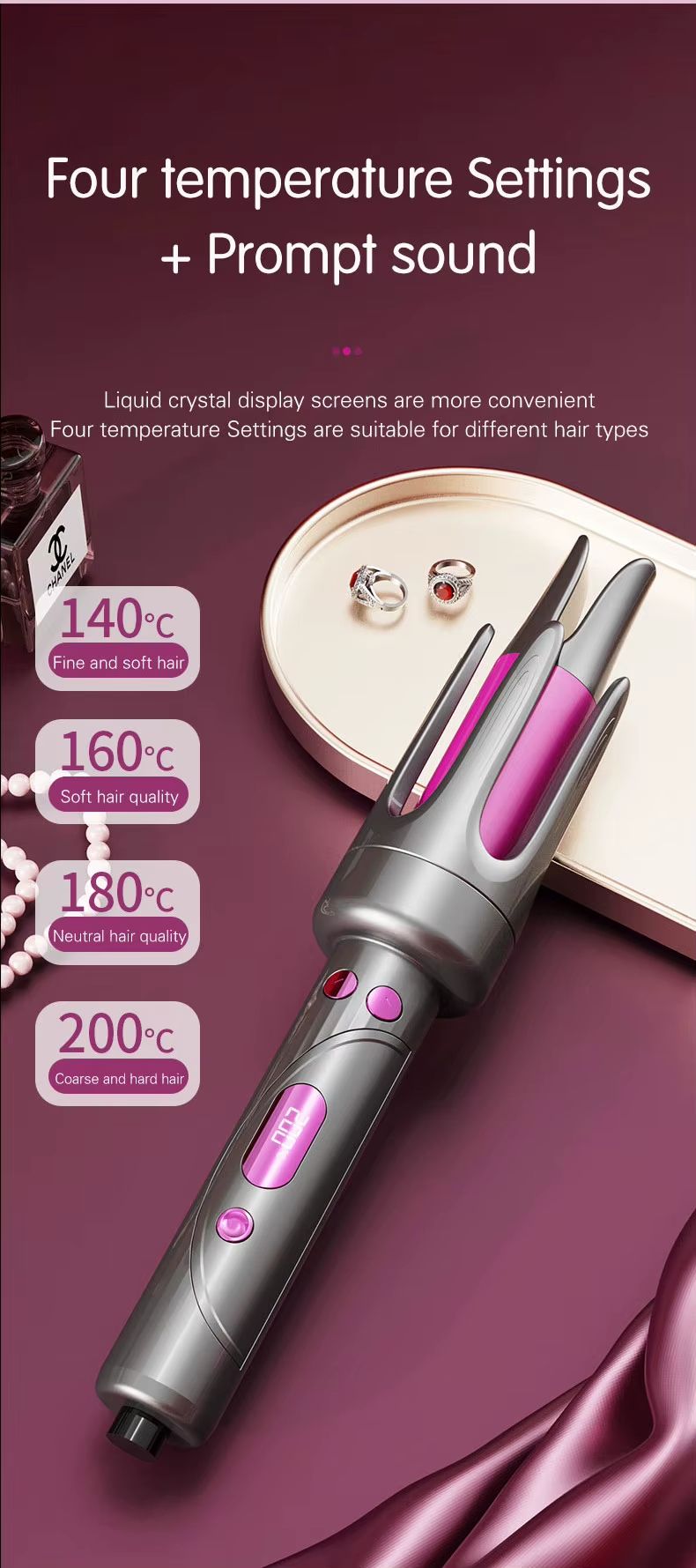 Vara de ondulação de cabelo longo de cerâmica profissional de venda quente, portátil, elétrica, automática, rotação rápida, dipolo de emissão de luz para mordomo