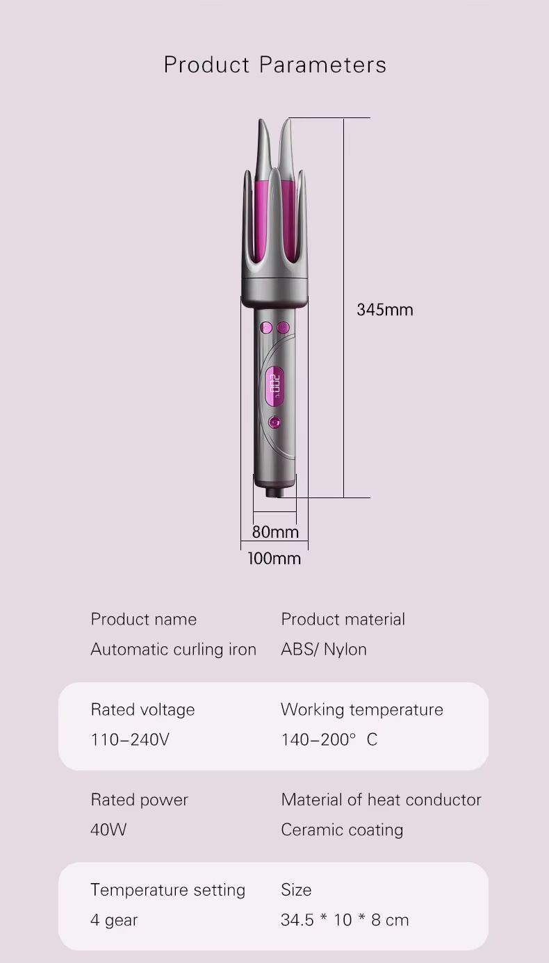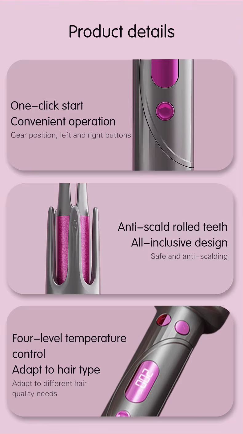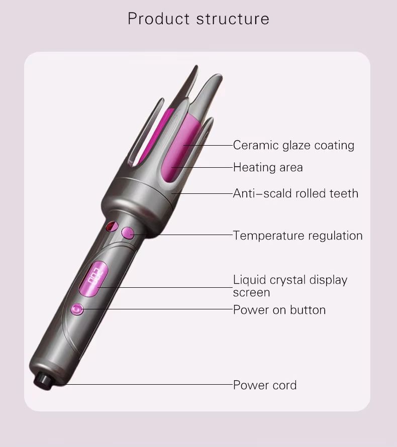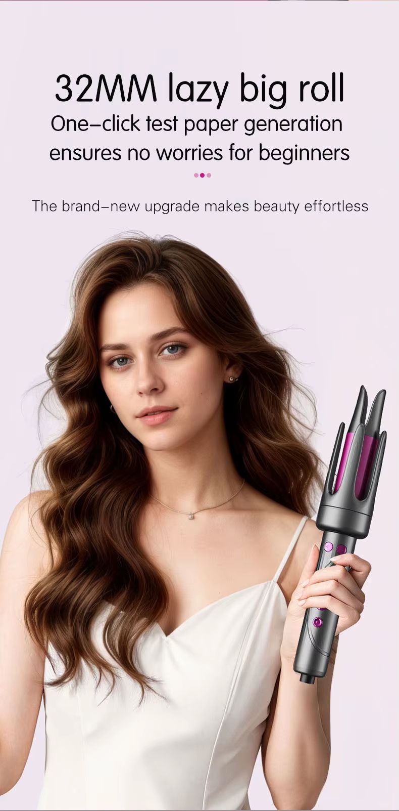 Vara de ondulação de cabelo longo de cerâmica profissional de venda quente, portátil, elétrica, automática, rotação rápida, dipolo de emissão de luz para mordomo