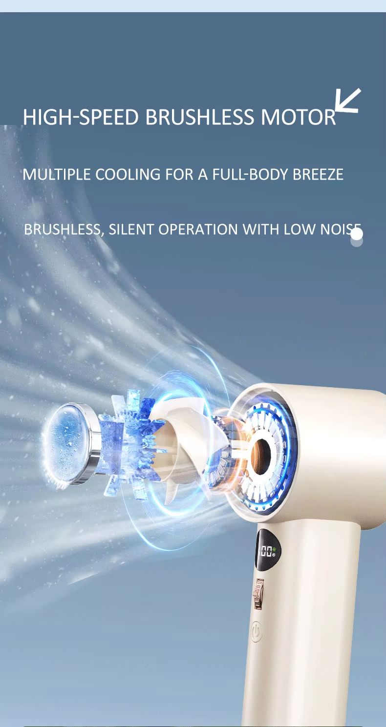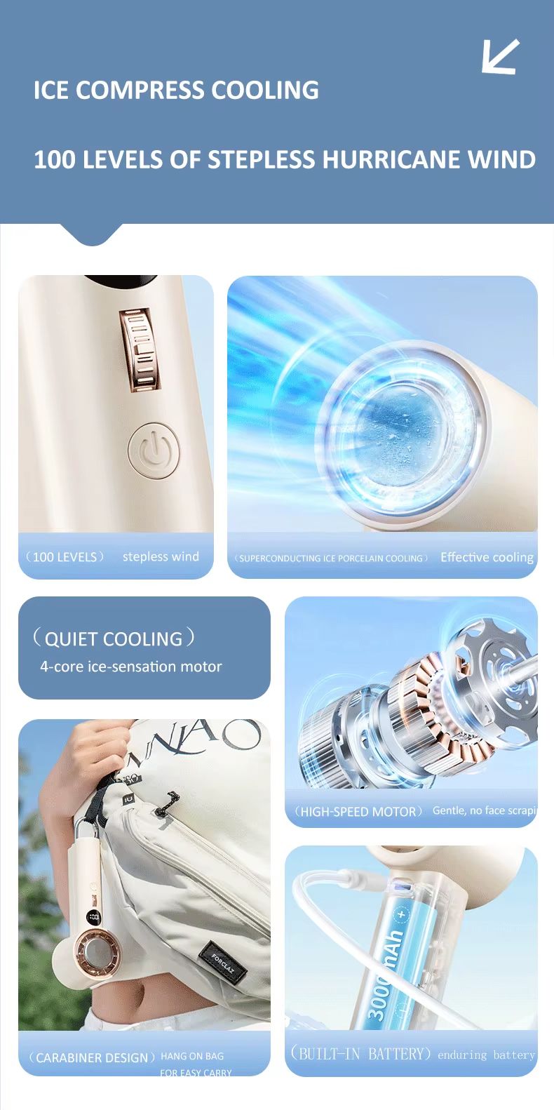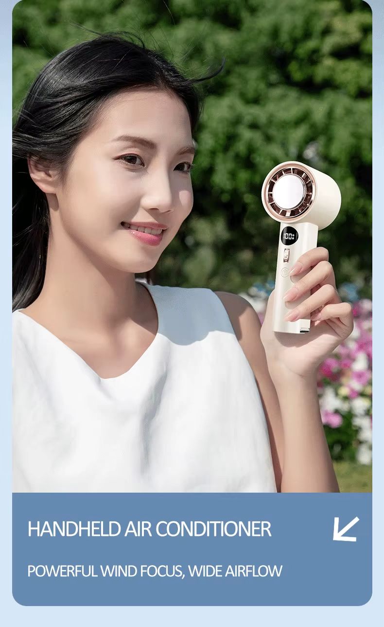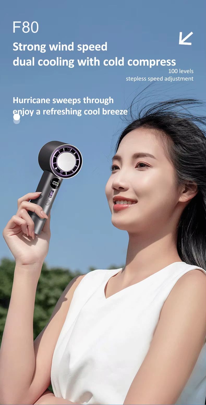 Ventilador portátil inteligente de refrigeração de alta velocidade de 3000 mA 100 botões de rolo de engrenagem motor sem escova ventilador de suspensão de pressão a frio