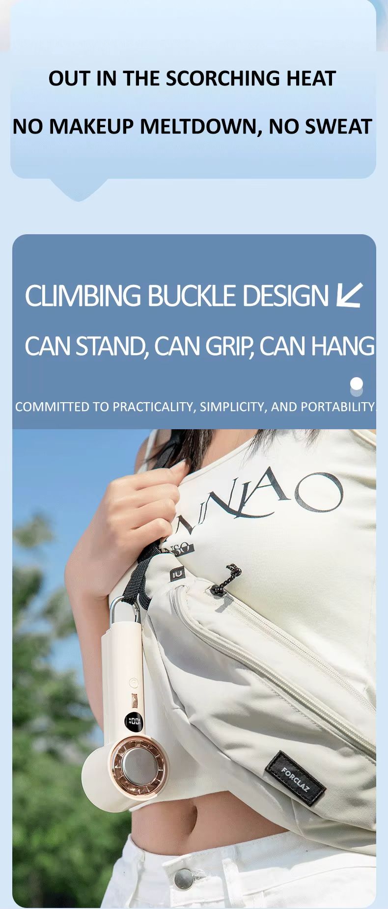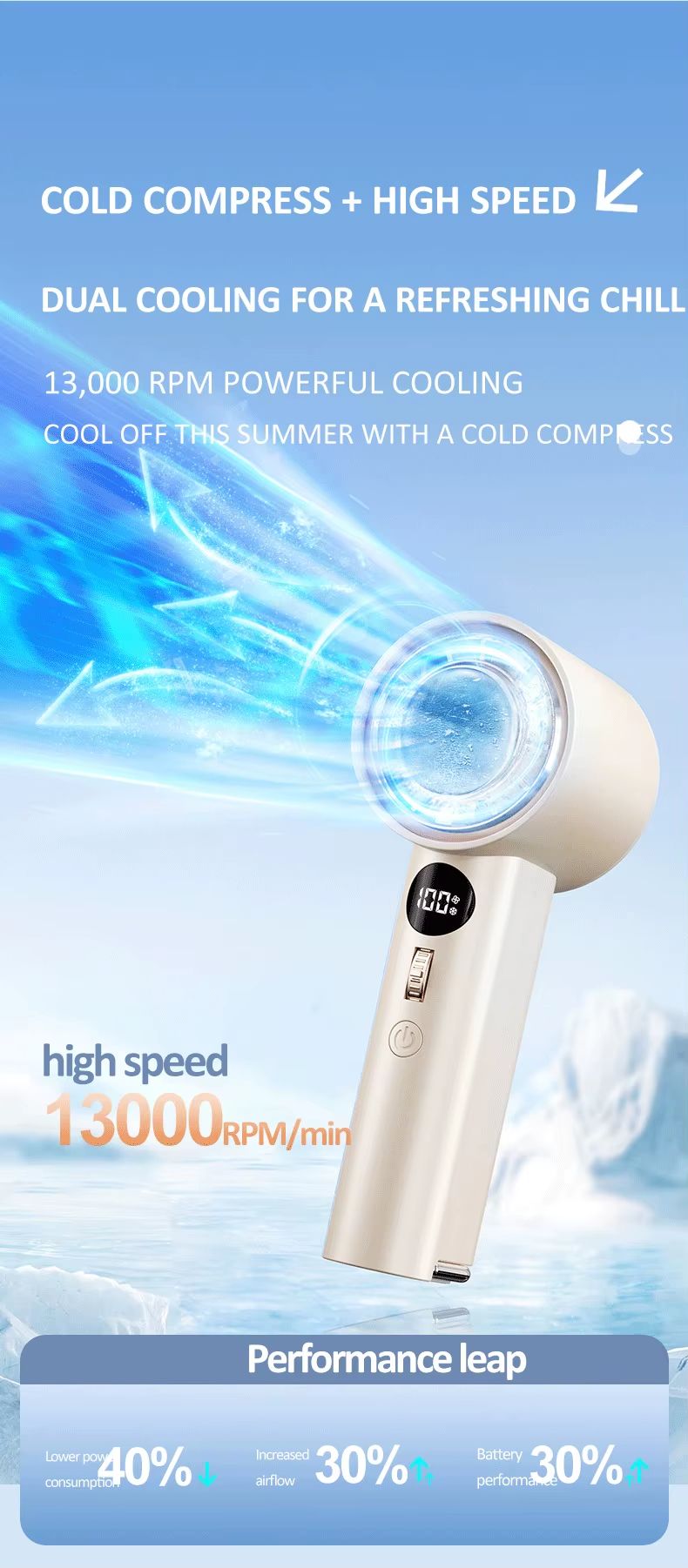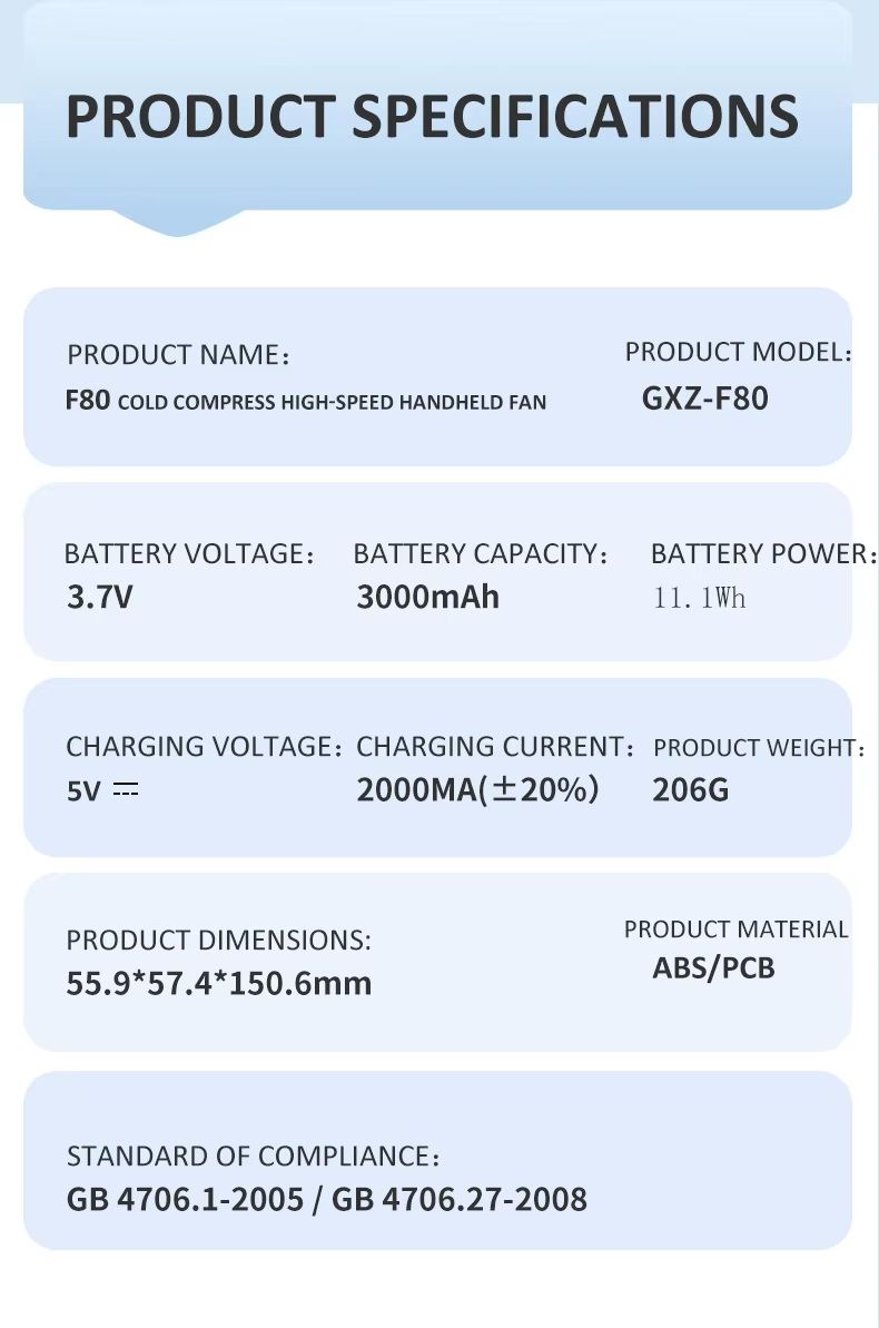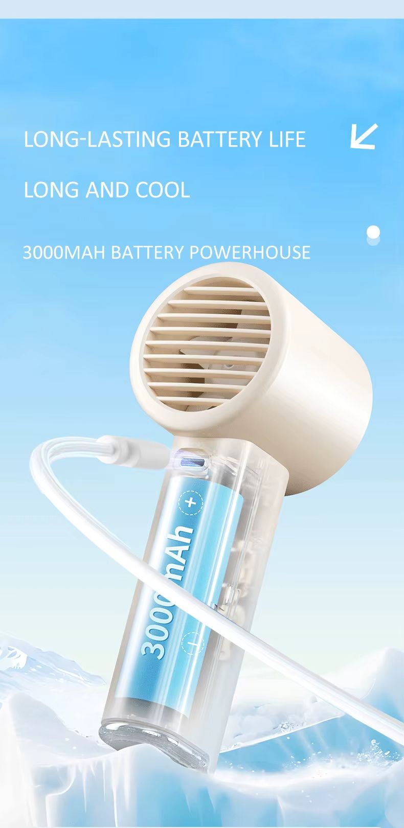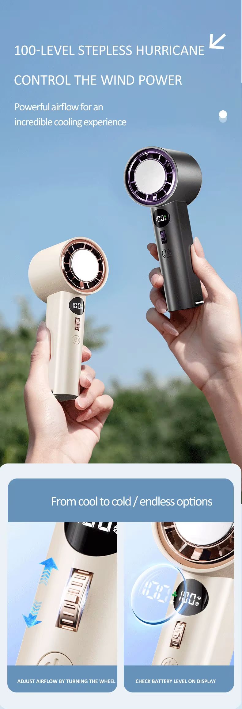 Ventilador portátil inteligente de refrigeração de alta velocidade de 3000 mA 100 botões de rolo de engrenagem motor sem escova ventilador de suspensão de pressão a frio